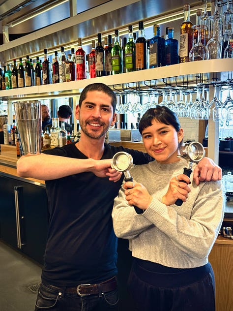 Next, the guys introduce me to Head Bartender Aldo Sierra (coming from the same role in Mexico), who gets right to the matter of winning my heart by making me two coffee cocktails: a traditional Carajillo with just espresso and Licor 43 (regular readers will know I’ve become obsessed with these); and a Mezcalillo with espresso and mezcal. They’re both frothy and fantastic, the latter reminding me of a drink I’d once made at home with a splash of mezcal in my pourover, which I’d casually named “mezcoffee.” As I sip, Ferretís points out the the style of the hefty and colorful coffee mugs they’ve purchased from New Zealand, the same ones they use in Mazatlán. They place attention to detail on the little things, which as a whole help compose the atmosphere create a customer’s experience.