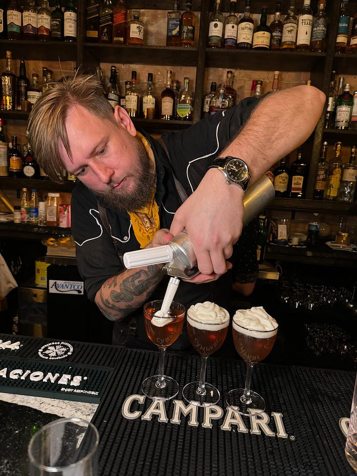 As for what cocktails he will make, Pfund says he’ll be able to hit classics and favorites by request. He’ll do popular industry shots like Ferrari’s (equal-parts Fernet and Campari). And he will revive some of his own creations that he’s traveled with between bars, like his Stormin’ Norman (a bestseller at Eleven18) made with Yellow Chartreuse, rye and amaro.
