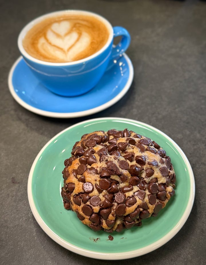 The guys start me with a chocolate chip “cookie” — I’ve put that in quotes because it’s unlike any other I’ve seen. It’s the size of a bagel, and they say it’s New York style, rightfully pointing out the divinely chewy interior. To any other businesses downtown perhaps feeling trepidatious about their arrival (perception of competition being what it is to some), Ferretís holds the cookie up as example of how “we’re not doing the same thing as others. We don’t want to compete with anyone, we’re just different. Another option. They don’t need to be afraid of us.”