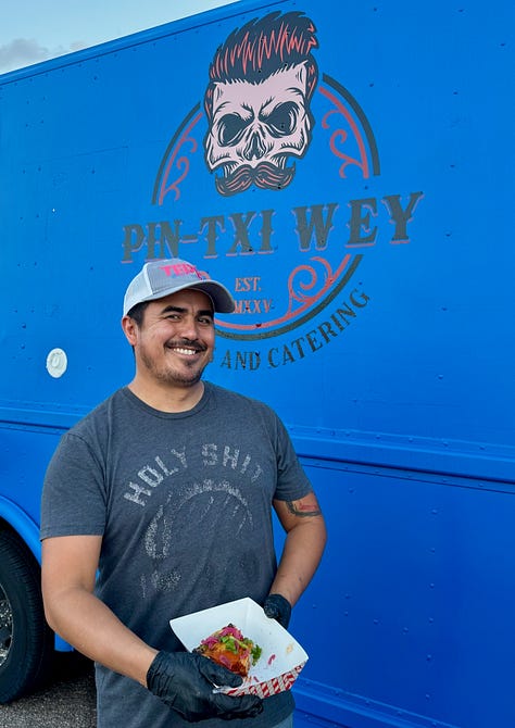Tepex was Trancoso’s original (and quite popular) food truck concept, which brings him full circle as he heads back out onto the road with Pin-Txi Wey. He’s currently parking at Cheers, noon to 7 p.m., Tuesdays-Saturdays. He’s hoping to regain spaces in the local brewery circuit soon. Check his Instagram for updates.
