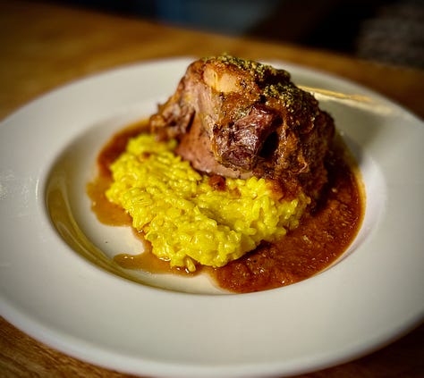 • Braised veal osso bucco with saffron risotto and pistachio gremolata, in honor of the late Chef Alessandro Bozzato,who opened Truffles in Ladue with Chef Eric.