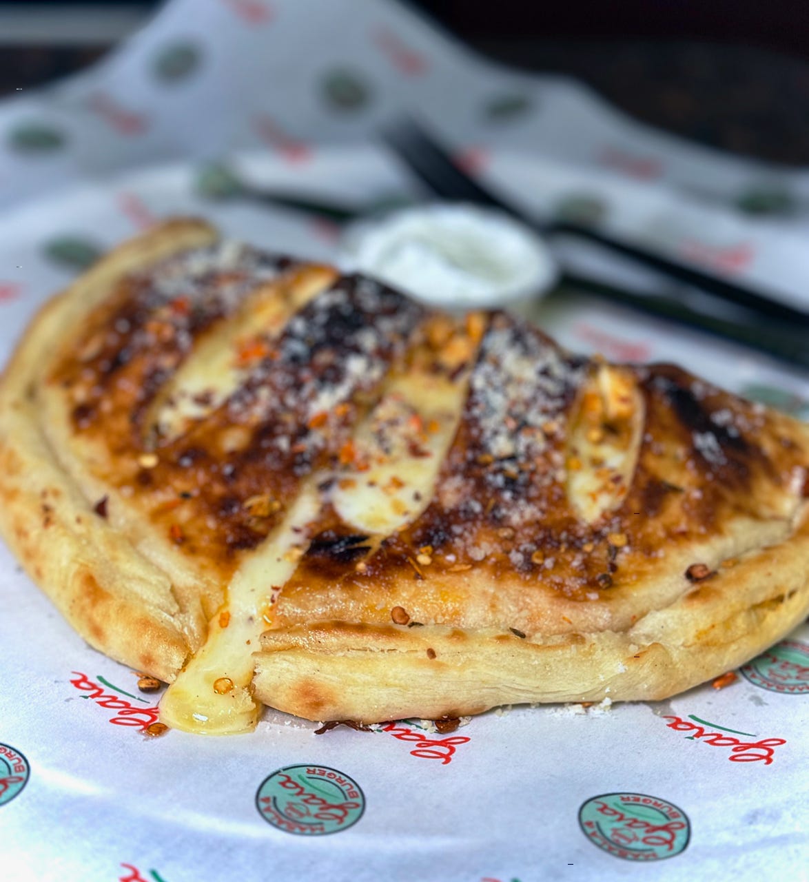 The paneer tikka masala calzone for instance, which we order at a just-right medium heat level, delivers an obscene stuffing of cheese between the melty but still composed paneer chunks and the fully gooey mozzarella that’s best shared between a table and treated like an appetizer. Unless you don’t desire to poop for a couple days (not speaking from experience). The Indian spice profile is infused into the Italian vessel, and the dough’s soft, pillowy and delightful. And there’s a pleasant Gaia sauce made with (unknown) spices, sour cream, mayo and honey for optional dipping, if you want even more creaminess.