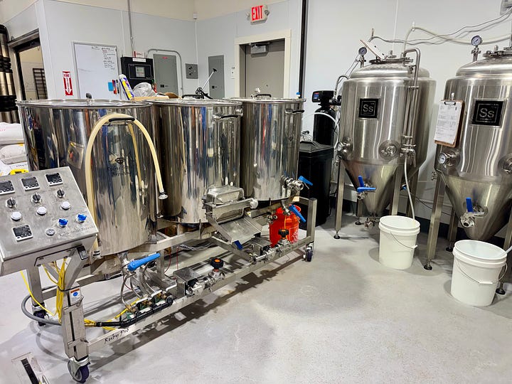 From our tour we learn that they brew on a one-barrel Ruby Street Brewing system that yields a little over 30 gallons a batch, making this a true nano operation. “This will be a great pilot system once we expand later,” she says, noting they plan to jump up to a 5-barrel rig. She also shows off their “no waste” distribution lines from their coolers into the taproom, praising Pro Bev for their highly efficient design and custom install. Everything’s clearly been created with intentionality and good stewardship in mind. They recycle water from the brewing process and give spent grains to local farmers.