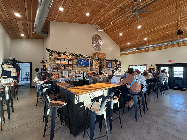 During our visit in late December, Stephanie gives us a tour of the brewery, located in the rear of the taproom. The structure is situated on a little over 13 acres in Falcon, which they purchased in 2021. Completely self-funded, they, spent four years rehabilitating the land, to include tearing down dilapidated structures like an abandoned horse arena, and ultimately hauling away 130 tons of waste, she tells us. Then they got to work building, able to use some reclaimed items such as stall dividers from a horse barn, which were used to construct Ascent’s Bar.