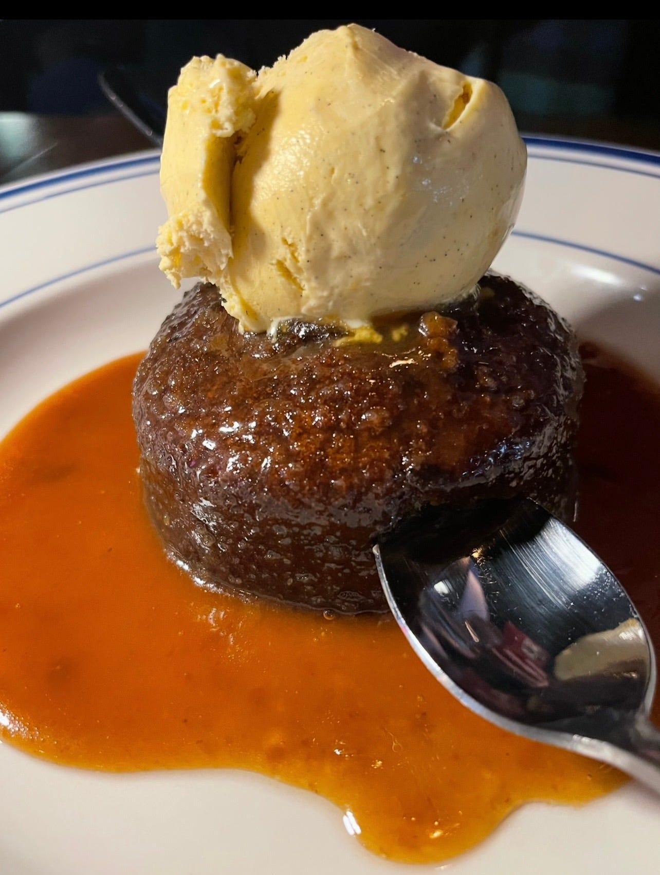 We couldn't leave without trying the Sticky Toffee Pudding, a classic British dessert of dense date sponge cake topped with a toffee sauce. The sauce was a little grainy and wildly sweet sampled on its own, but when eaten with the not-very-sweet cake, it created a balanced flavor combo. We promised each other we’ll return soon to try more things, especially the Sunday Roast (11 a.m. until sellout, Sundays only).