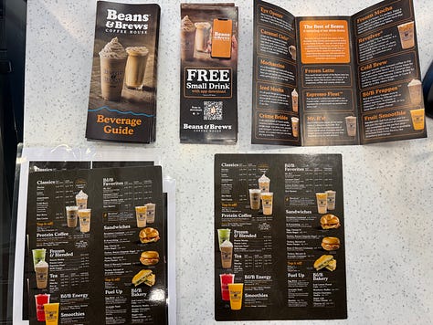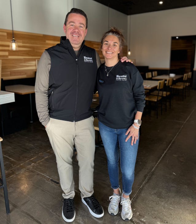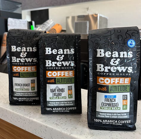 I’m curious why they chose Beans & Brews a franchisees, in a sector where national coffee brands proliferate. They researched others and had even traveled to California to look closer at one they almost bought into, but decided it wasn’t the right fit. When they later ventured to Utah to explore B&B, they felt “the mountain vibes connected with their high-elevation roasting… there’s a more natural connection to Colorado.”