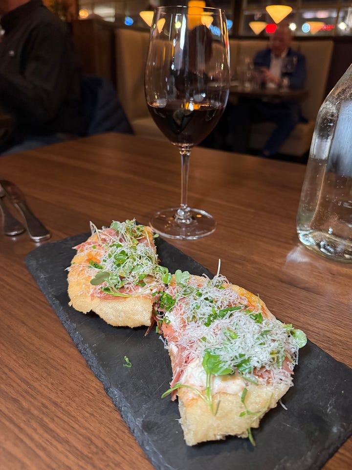 Now, the spot has re-opened as Amore Italian Grille. We paid to attend a $75 per person, five-course soft launch on Jan. 27. I’ll share photos and dish descriptions below that give a first gander at the goods (versus reviewing on day one — not cool).