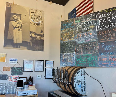 Anyway, now that you understand the brewery’s unicorn status and my love for and obsession with it, I want you to give Colorado Public Radio editor Hayley Sanchez’s short writeup a read — and at the top of the page you’ll find a “Listen Now” button to click. That takes you to a 20-minute segment she produced from her brewhouse tour with Cody and my tasting through six Colorado Farm Brewery beers with him. In between sips, he shares lots more information about the farm and his family’s history in the valley. (The tour takes up the first four minutes of the segment, and my chat and tasting runs from that four minute mark onward.)
