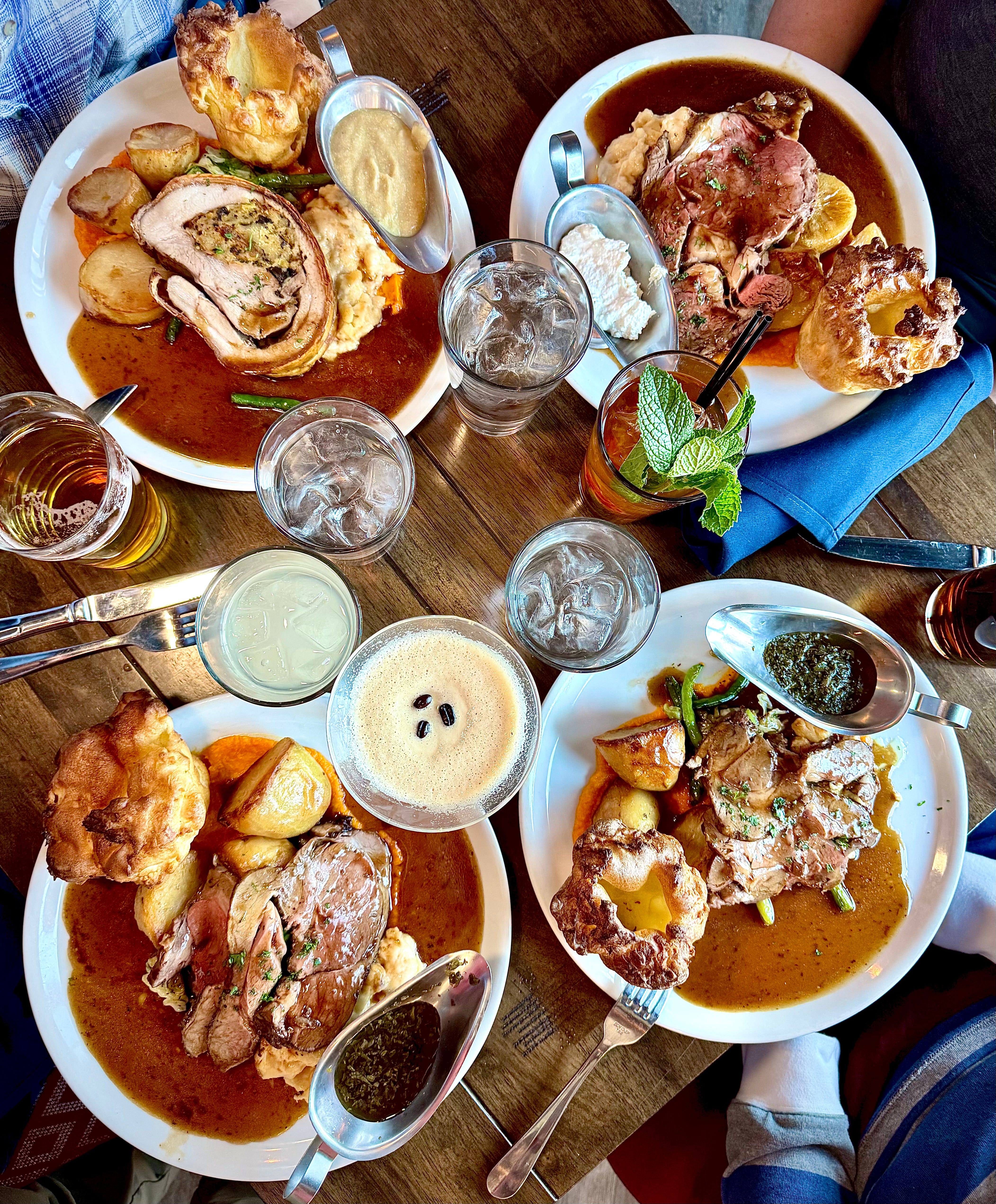 • The Brit Pub has started a new Bite Club Wednesdays with weekly-changing, three-course menus for $25/person. The most recent offering: Moroccan-spiced bell pepper hummus with veggies and naan; braised lamb shepherds pie with madeira jus; and cheesecake topped with pumpkin mousse, candied pecan and toasted marshmallow. If you still haven’t check out their Sunday Roast (11 a.m. until sell out), make time to do so. I finally made it down this past weekend (thanks to urging from Lauren and her bestie Lauren; so, the Laurens) and we tried the prime rib roast, leg of lamb and sage- and apricot-stuffed pork belly — and oh my! Superb cookery by Chef Phil Griffin and crew. Each protein option ($22-$32) comes with beef fat-roasted potatoes, honey- and thyme- glazed parsnips, carrot purée, cauliflower cheese, cabbage, gravy and Yorkshire pudding. I think this photo speaks for itself it terms of portions and quality: