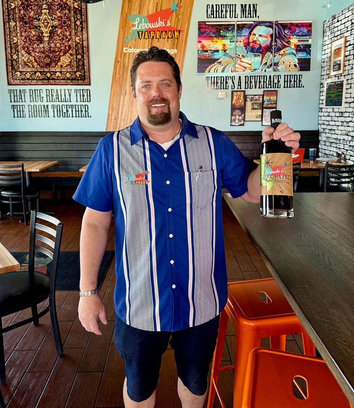 Now, Lebowski’s Taproom — originally opened in August 2023 at 3240 Centennial Blvd. — is expanding to a second, much-larger location. It will occupy the former Till Kitchen and Homestead Collective space at 9633 Prominent Point. (Yes, the one that supposedly sold and triggered the closure of Dad’s Donuts last month.)