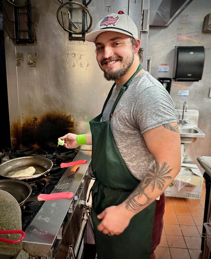 To the Eastern European-styled menu, they’ve recently added fresh fish specials, created by Chef Dylan Higgins. I chat with him too when I’m there, gleaning his path to this kitchen. He tells me he got his start in the dish pit at Doug’s Breakfast Lunch, later working for 1231 Craft Kitchen (who used to be co-located with FH Beerworks before both closed) and then Burnt Toast and Avenue 19 food hall. He’d risen to an executive sous chef title by then, taking that experience to a country club in Florida before moving back here.