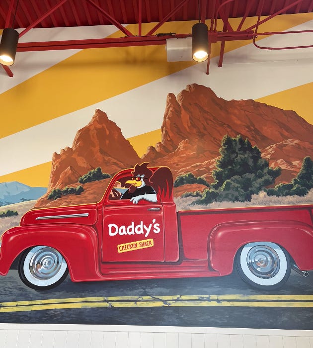 Confession: I LOVE fried pickles. That’s what drew me to Daddy’s Chicken Shack — which opened in the Springs in March, 2024 off Voyager Parkway. I’ve had a million good fast-food chicken sandwiches in my life, but good fried pickles are harder to find.