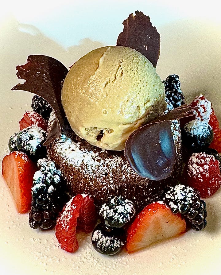 Selecting a main plate’s also difficult because each holds high points and excels in its own way. Let’s say there’s no wrong choices here, so go with what’s appealing in the moment: beef, bass or risotto. The first is Eagle’s Nest Ranch wagyu short ribs with fingerlings, vegetables and gremolata. The Colorado Striped Bass gets spinach, artichoke and a brown butter-lemon-herb sauce; its crispy skin alone pleases. The risotto comes with Fort Collins-grown mushrooms, roasted and joined by lemon, Parmesan and Fontina foam.