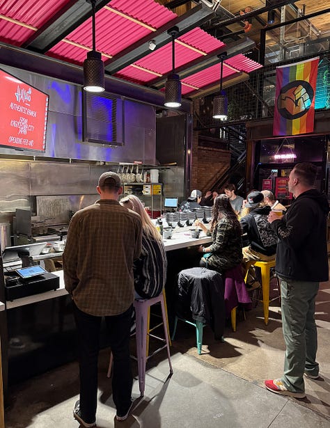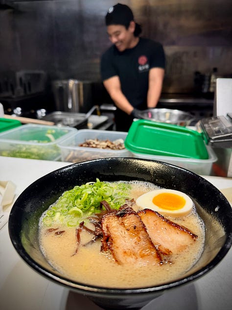 • Back in November I reported on the opening of a pretty fantastic ramen popup named Hayato, serving on Sundays and Mondays weekly inside of District Elleven. And last week in this briefs section I noted how they’ve found a new home at Coati food hall. Well, I stopped by for a preview the night before service officially began, and finally got a taste of Chef Kei’s tonkatsu ramen that business partner Melvin Davila had been talking up since the day I first met him. The bowl did not disappoint. Davila tells me they’re still working on sourcing everything they need through specialty purveyors, and while we were on site a couple of boxes of goods arrived, last-minute. It was a hectic but happy launch, with Davila passing us the first two bowls of ramen served in the new space (aw, shucks, what an honor). The food hall’s atmosphere works perfectly to give Hayato an authentic feel, as if it was in a bustling metro station in Japan. Seats wrapping around the kitchen counter are perfect for an omakase-like, more intimate dining experience. I recommend eating there if you can versus taking your bowl elsewhere in the wider hall. But consider walking down to Rival Bar in the rear to bring back a sake or cocktail to enjoy with your noodles.