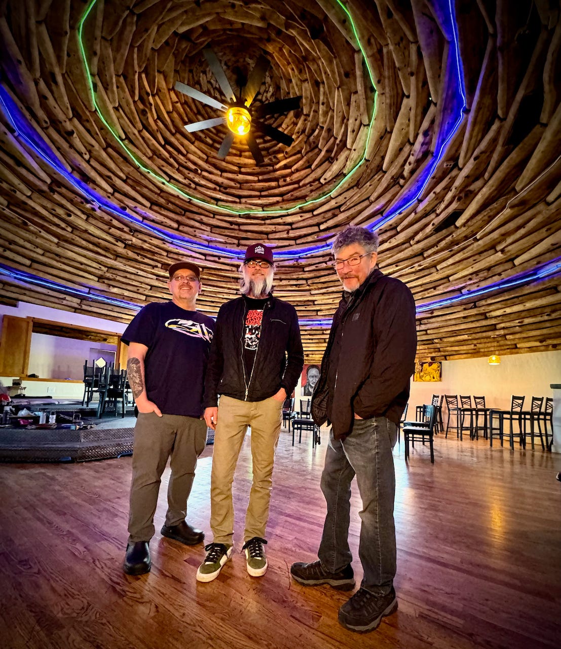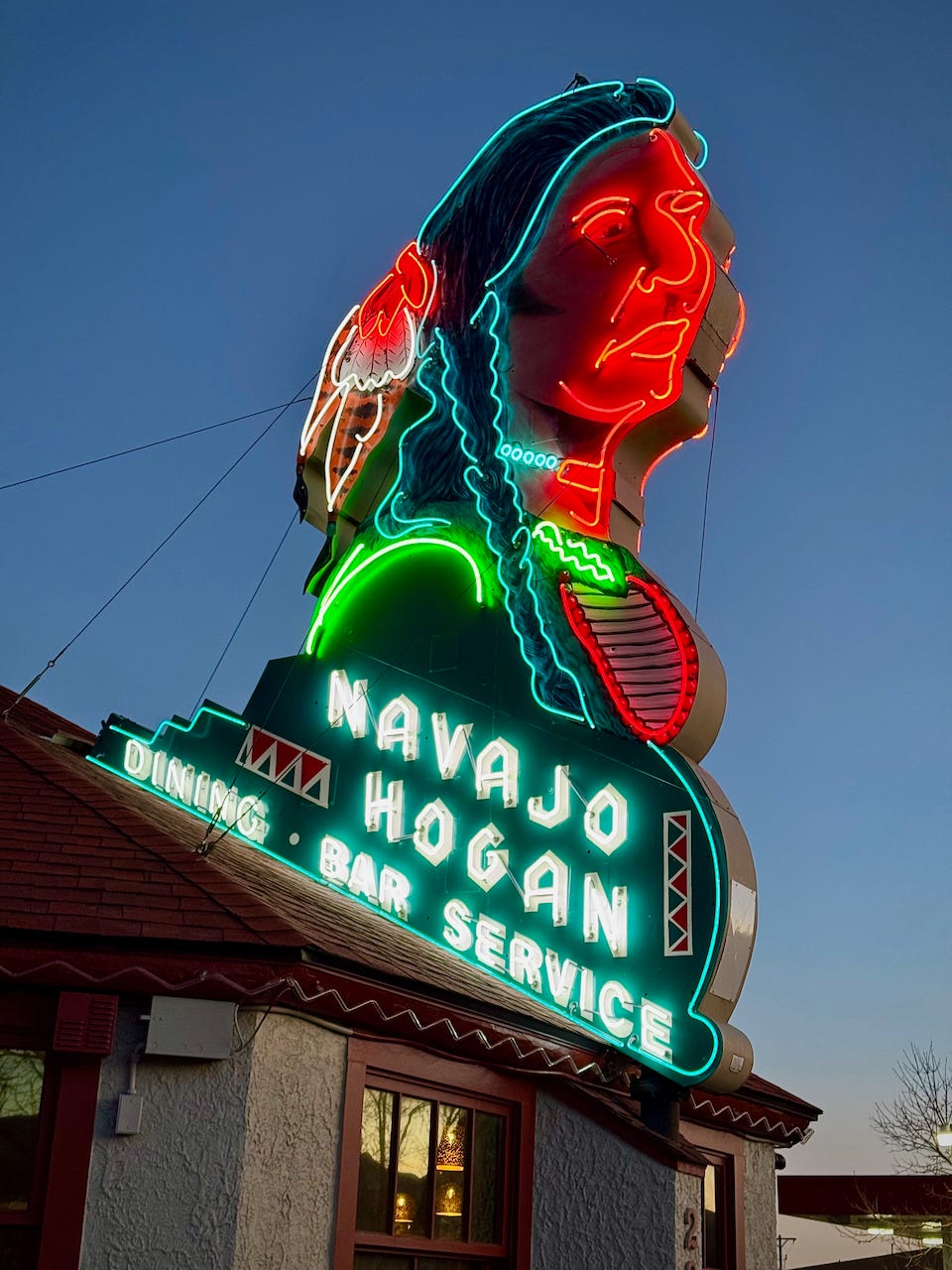 They’ve sanded and soda washed all the wide beams in the Hogan domes to clean up smoke damage. Couch got a surprise with a water drainage issue in the rear parking lot, so that was re-graded and re-paved. He had the Navajo head sign atop the building repainted and repaired the neon lighting on it to fully restore it. And behind the main roadhouse there’s an ancillary building that they’ve laboriously converted into a private events and banquet space, so they can cater larger parties.