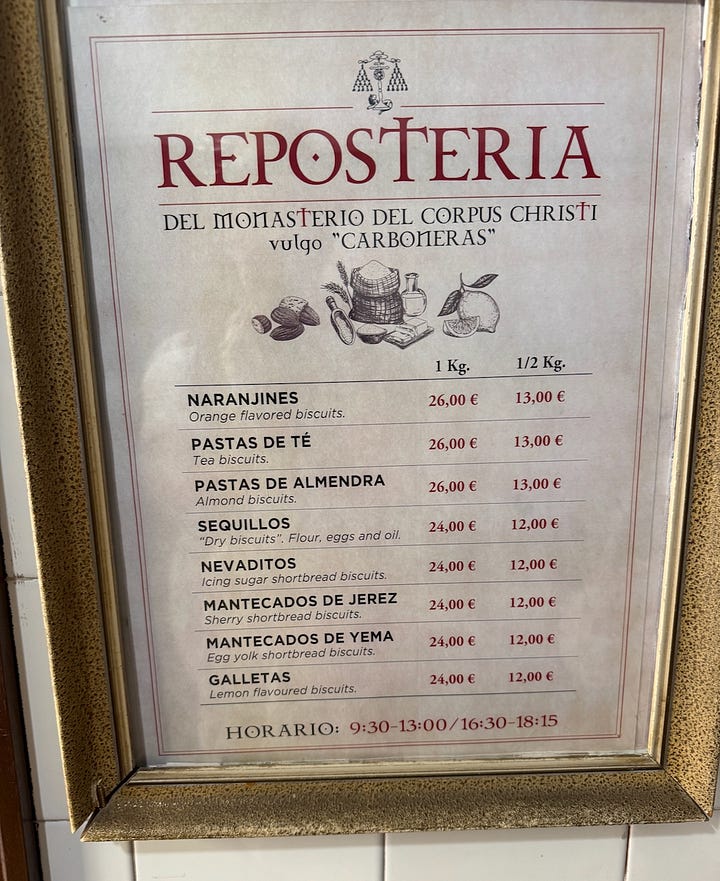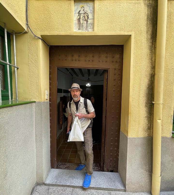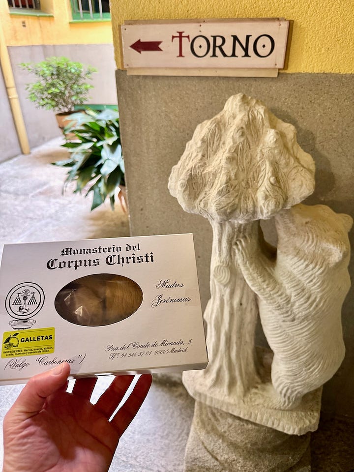 Okay, maybe that’s a little too racy of a headline, but that’s what the transaction feels like to exchange some euros for some sugar. Convent pastries are a thing across Spain, and the Monastery of Corpus Christi is famous with tourists for a variety of baked goods, including almond, orange or sherry shortbread biscuits (cookies). We’re only able to obtain a box of galletas, lemon-infused, crumbly and delightful. You put your money on the lazy susan-like wheel set into a wall in the monastery, and the nuns rotate it back to you with the good goods. You hear whispered voices behind the wall, but never see your dealer’s face. Despite being under the eyes of God and all, it feels clandestine. Whether that makes bites more sinful or sacred — you decide.