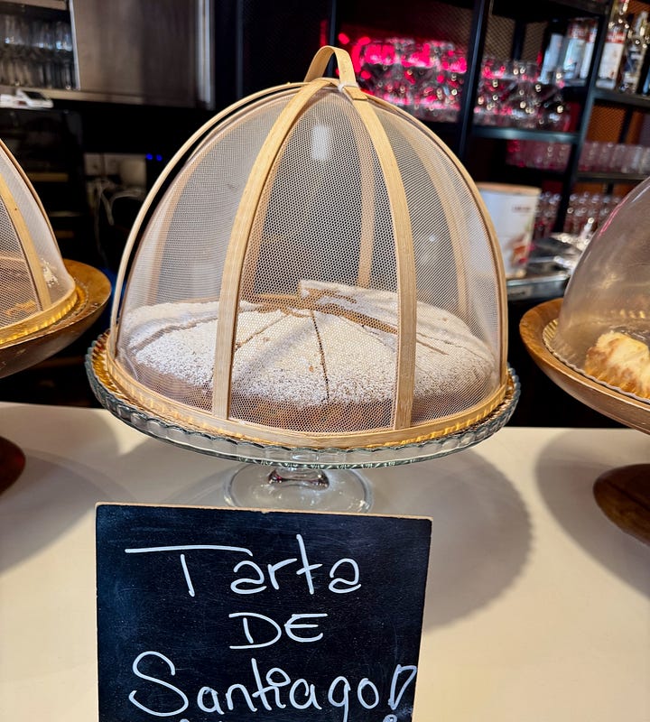 You know this town’s name because it’s where the Camino de Santiago pilgrimage trail through Spain concludes. We dropped by briefly and witnessed many of the ecstatic backpackers arriving in the cathedral square. Before departing, we nabbed a slice of Tarta de Santiago almond cake from a small cafe. It’s a simple, spongy and crumbly treat typically made with just egg, butter, sugar and almond meal, so it’s gluten-free. Definitely coffee friendly.