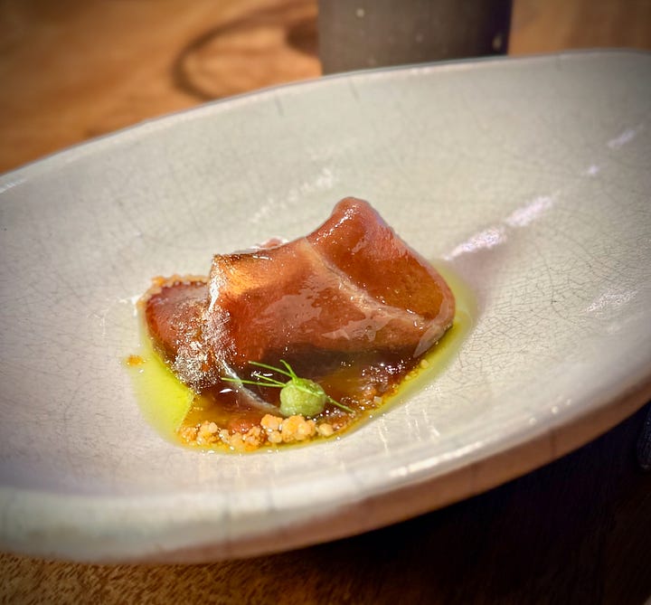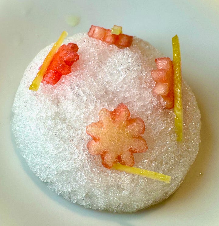 I don’t want to risk boring you with overly-long dish descriptions for the many courses ahead, so similar to the past couple weeks, I’ll let the photos do much of the talking, and use the caption lines for details. Transparently, the menu had a lot of one and two-word descriptions and I also took less than my usual detailed notes as I wanted to be present in the moment and savor the experience to the best of my ability. (Monkey-minded type-A guy here.) But here’s what I’ve got:
