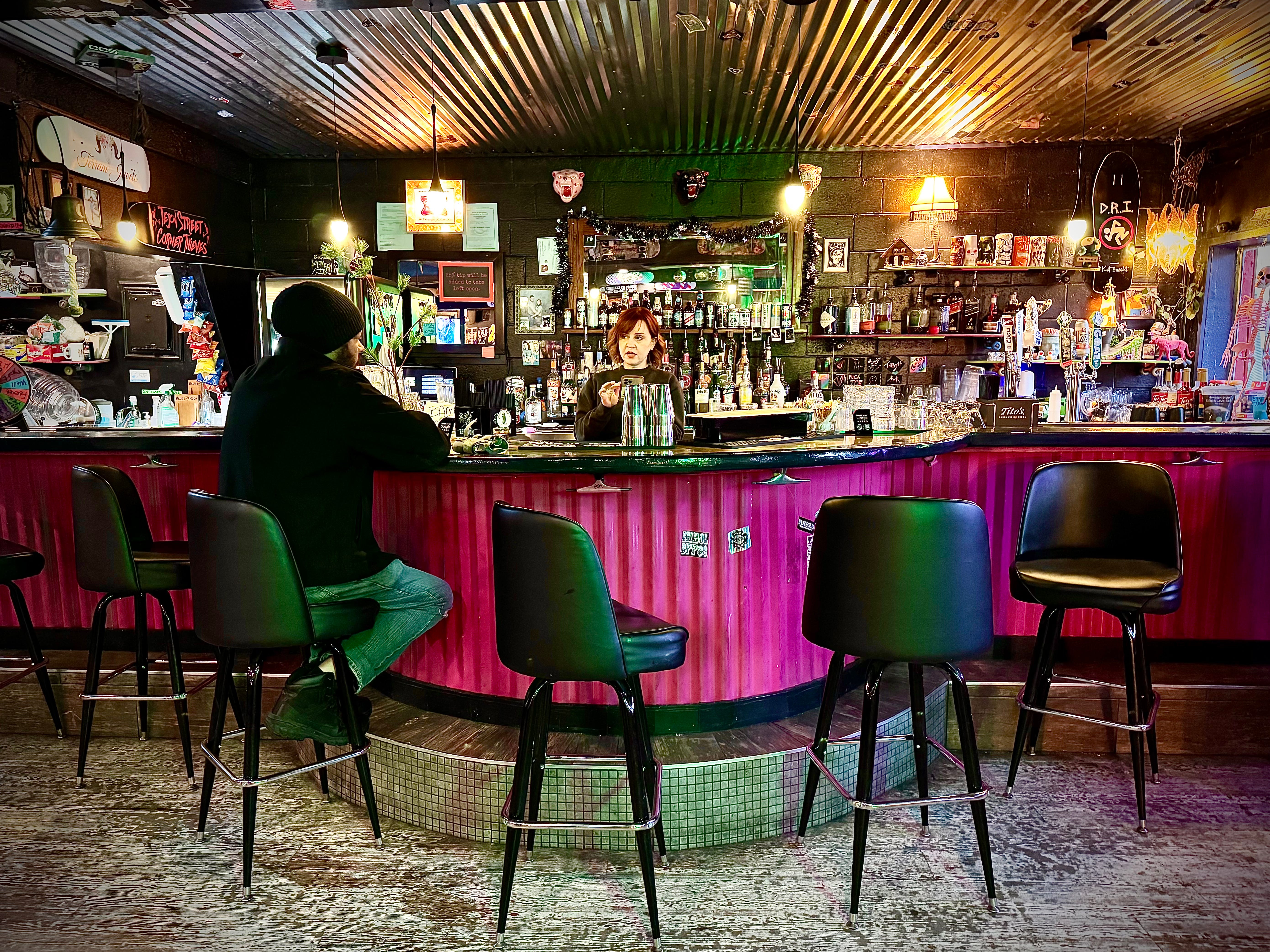 Connor and Dania O’Neal are behind the bar venture. Connor’s best known locally as the singer and banjo player from the popular local trashgrass (punk/bluegrass) band Tejon Street Corner Thieves. (They’re next playing the bar on New Year’s Eve.) Dania hails from a deep industry background that includes recent management of the Triple Nickel Tavern. And she formerly traveled as a stage hand with major touring acts, having first gotten a degree in show production.