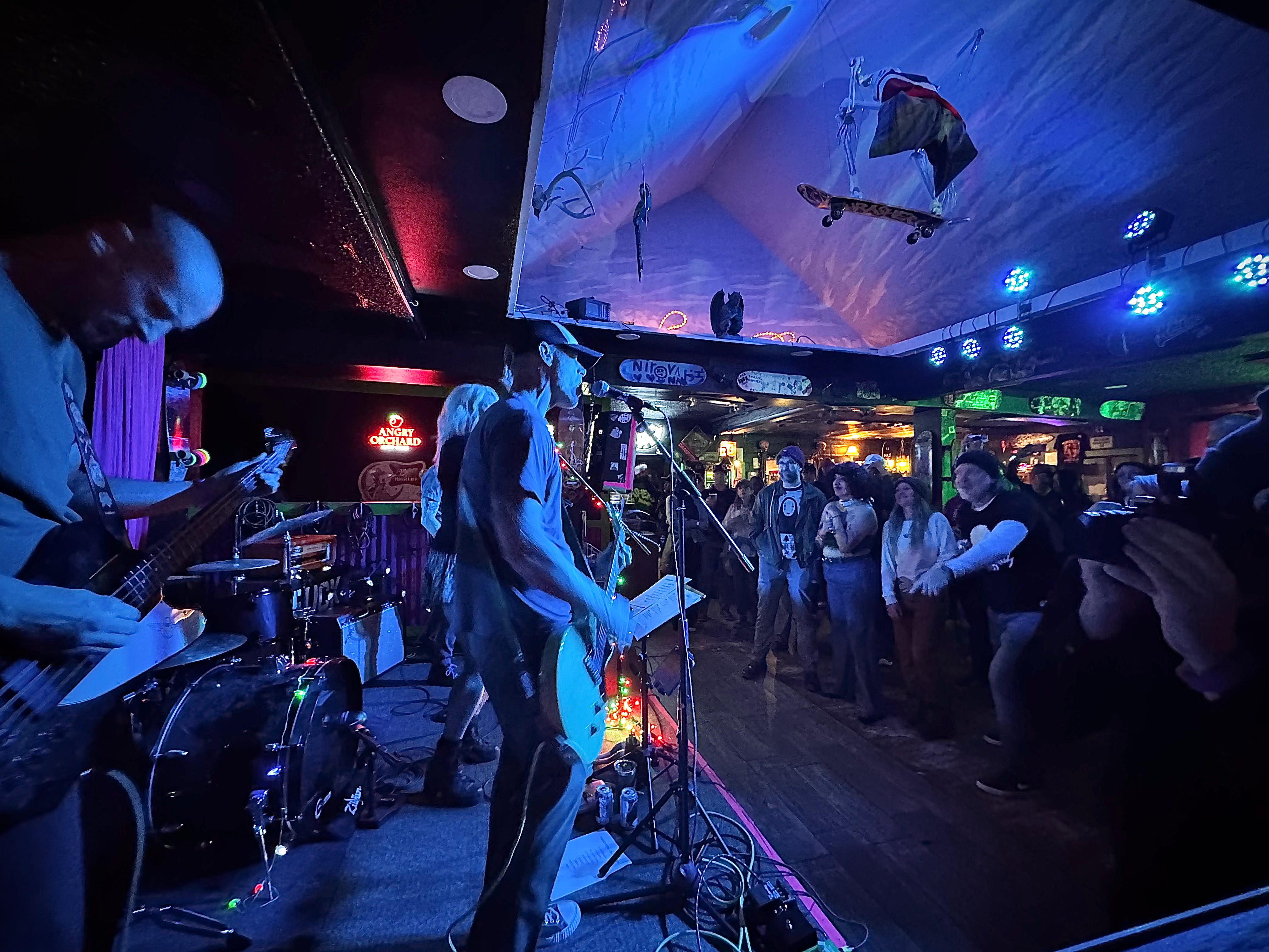 It’s the first Friday in December and I’m belatedly catching my first show at Thrasher’s Bar. My friends’ band Antivirus is part of the night’s lineup and they have a large crowd nodding heads and dancing in place, that is until the most peaceful, Gen X, middle aged white dude mosh pit forms and gently bumps shoulders to the tunes. (Everybody move, nobody get hurt.) The set ends, shots are had, hugs are given and we disappear back out into the cold night, warmed by the whole experience.