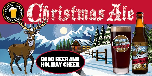 Bristol Brewing Company: Need a cool last minute gift? Spend $50 or more on Bristol swag in our Merch Store through Dec. 24 and get a free pint card! We have $25 mystery swag bags in festive wrapping paper containing Bristol goodies like t-shirts, souvenirs and free pint cards! Also, new 8 p.m. happy hour means $5 pints until close.
