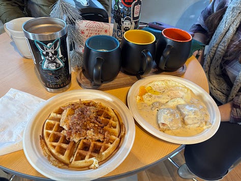 Great seeing all of you who made it out to our Sip With Schnip popup at Kangaroo Coffee this past weekend. Many a chicken and waffles and biscuits and gravy plate were slain in the name of fine flavors and fun times. Seasonal coffee flights sipped superlatively next to Gold Star Bakery sweets. The tunes were super tasteful too.