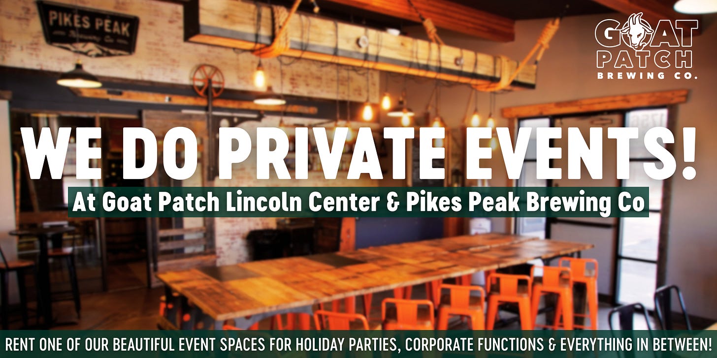 Goat Patch Brewing: At the Lincoln Center: Goatflix & Chill: Hocus Pocus, 7 p.m., Oct. 25. Halloween Goat Yoga, 10 a.m. to 1 p.m., Oct. 26; reserve here. At Northgate: Trivia Night, 6:30-8:30, Oct. 29. At Pikes Peak Brewing: Halloween Party: Haunted Prom, 7-10 p.m., Oct. 31.