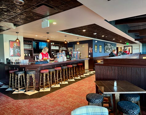 The whole interior, up and down, can squeeze 230 people, with the patio adding another 30. A private-dining room located off of the upstairs lounge seats 50 and features A/V for business-meeting needs. Everything upstairs has a view out onto the Switchbacks’ field, albeit at a parallel angle that elongates the field, making attendance at the game still the best seat to properly see all the action. (But sure, come get your free peepin’ on if you don’t have a ticket.)
