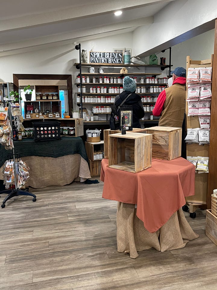 The Spice Rack is a cheerful hidden gem further away from town on CO-66, boasting a fun mural of civilized elk enjoying coffee or tea time. Inside you’ll find freshly baked pastries, coffee drinks made with OZO coffee from Boulder, enticing grab-and-go sandwiches, a huge array of spices, and wares from local makers. We tried the Wildflower Misto, a well-balanced blend of lavender and blackberry that tastes almost like blueberry. We also got a self-serve drip coffee (choice of two different roasts), which was excellent. The pastries are a little hit-or-miss. We’ve had a perfect and huge butter croissant, a respectable chocolate croissant, and a scone that needed more time in the oven. The charm and location (right by the entrance to the YMCA of the Rockies, where we always stay) keep us coming back.