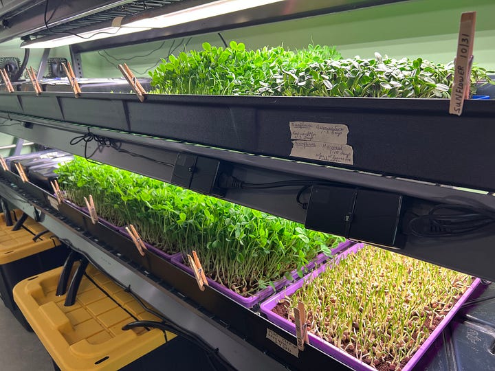 Whereas growing sprouts is easily accomplished at home in jars on a countertop (as I’ve done for years), cultivating microgreens requires soil or a hydroponics rig, and a whole grow-light setup that’s disincentivizing given the upfront investment and logistics. The items can be found at markets if you know where to go, but they’re lesser seen and and just not top-of-mind for the typical shopper.
