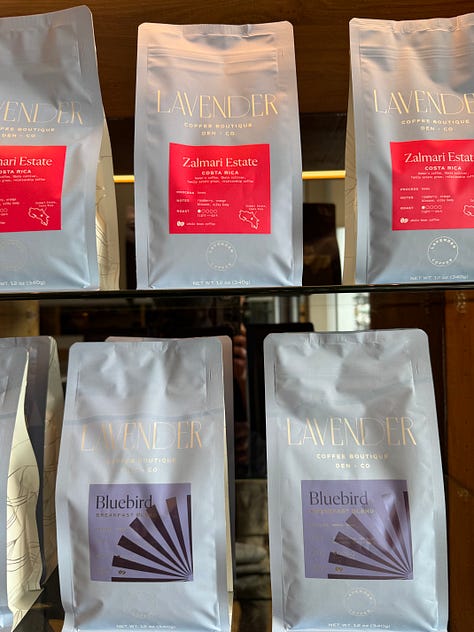 Lavender opened in late 2023, with a partial focus on CBD coffees. Our barista tells us they’re poised to open another location in Cherry Hills Village around year’s end. I note the wide retail bean selection near the front counter, asking where they roast, and am told they’re roasted for Lavender by Sträva Craft Coffee.