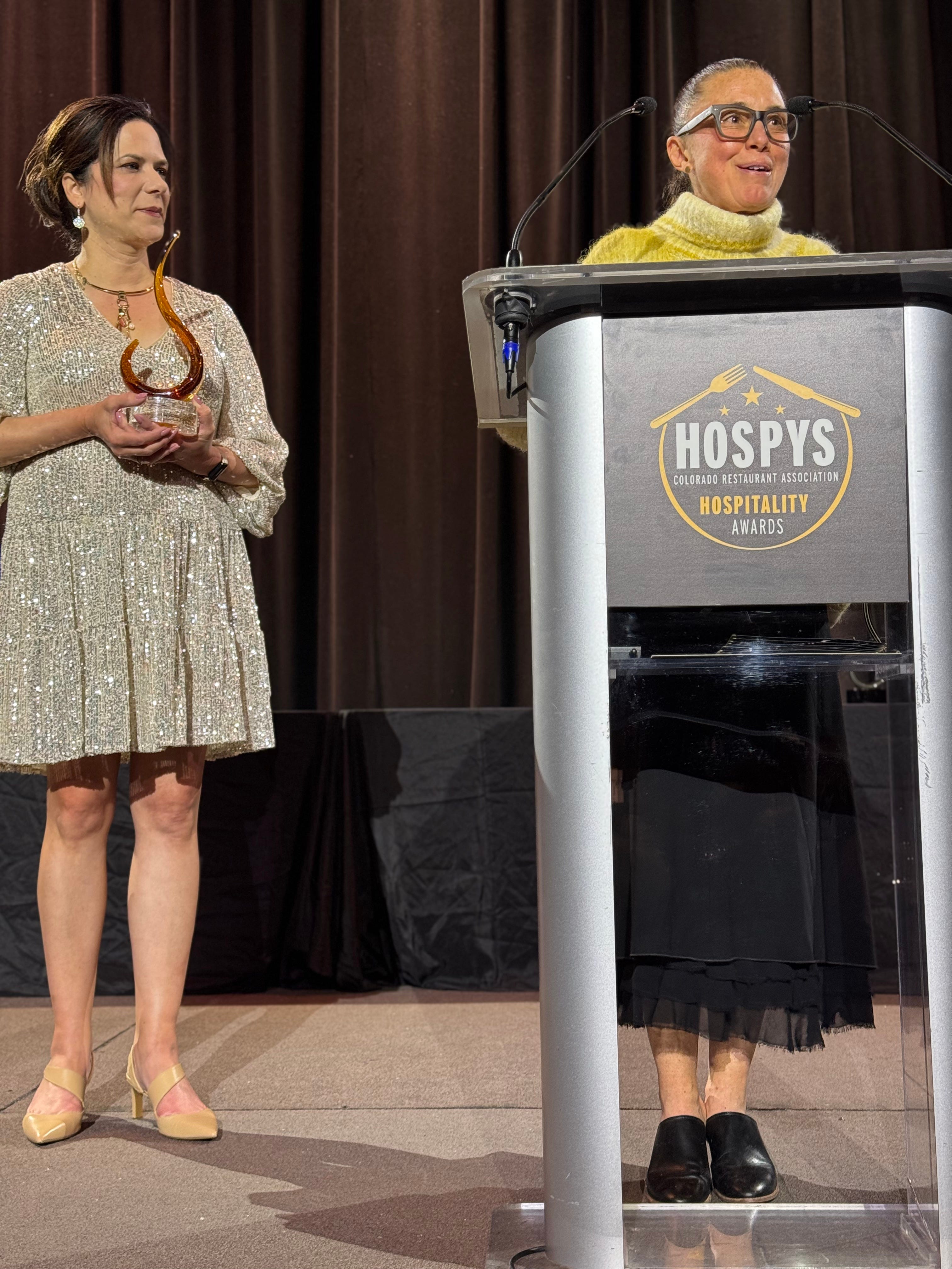 We ventured to Denver on Nov. 10 to attend the Colorado Restaurant Association’s HOSPYS Hospitality Awards in hopes of seeing Kangaroo Coffee’s Doug Hammond win the award for Operator of the Year. As with Red Gravy chef Eric Brenner’s nomination last year (in the Chef of the Year category), unfortunately that didn’t happen. But it’s a huge honor to be nominated anyway, and in the room with much of the top talent in the state. Doug and Eric (both Side Dish Dozen members) should be proud of their respective accomplishments that earned them consideration.