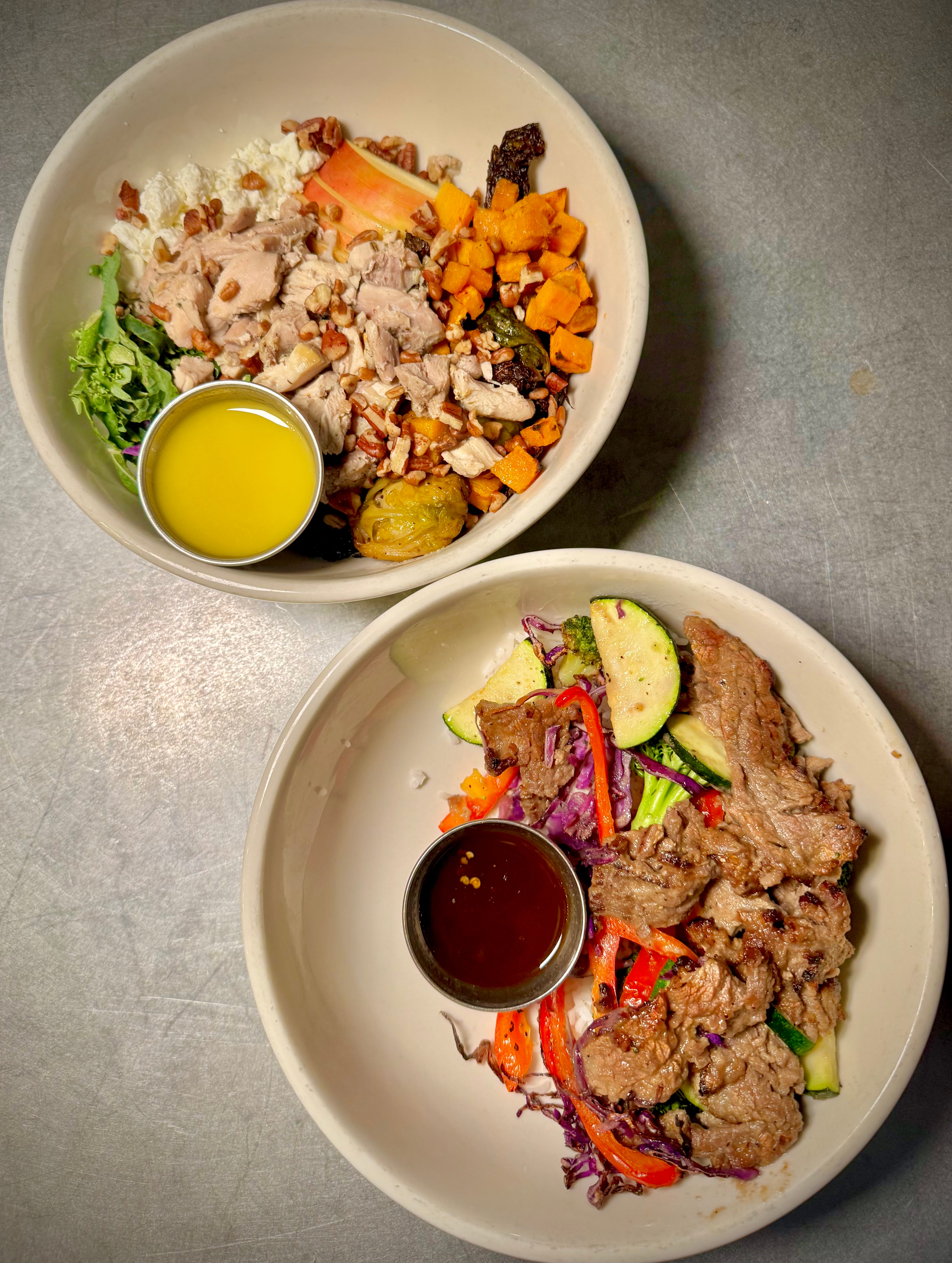 Brotherton favors the bestselling Korean BBQ Bowl (with beef over basmati with roasted pears and veggies in a tamari-chile sauce). Robinson says a great dish for newbies to try is kitchen manager Nick Treslo’s Harvest Bowl. It features a bountiful mix of quinoa, roasted Brussels sprouts and sweet potatoes, apples, kale, goat cheese and toasted pecans mixed with apple cider vinaigrette. You can add any protein to it, including tofu, chicken and chilled shrimp.