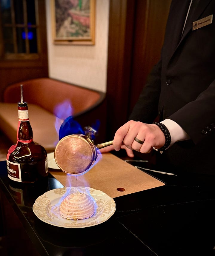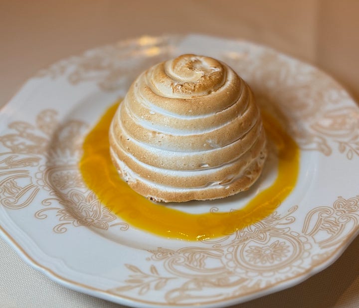 Tableside flambéing of a Baked Alaska, which isn't a boring traditional version, but instead an Asian-inspired rendition, made with Tahitian vanilla bean ice cream, mango sorbet, lemongrass-infused lady fingers, a mango passionfruit coulis and Italian meringue. There's a whole other story to the fine Ginori 1735 china on display, told to us by VP of Sales and Marketing, Scott Flexman. The Broadmoor reps visited Bergdorf Goodman in New York and commissioned their own custom design which adorns all The Penrose Room dishware. It's elegant and highlights the food, making me think of something served in a tea house or on a luxury cruise ship like one the Penroses would have traveled on. Transparency note: In a departing gift bag given to media attendees, Flexman generously gave everyone a piece of Ginori porcelain.