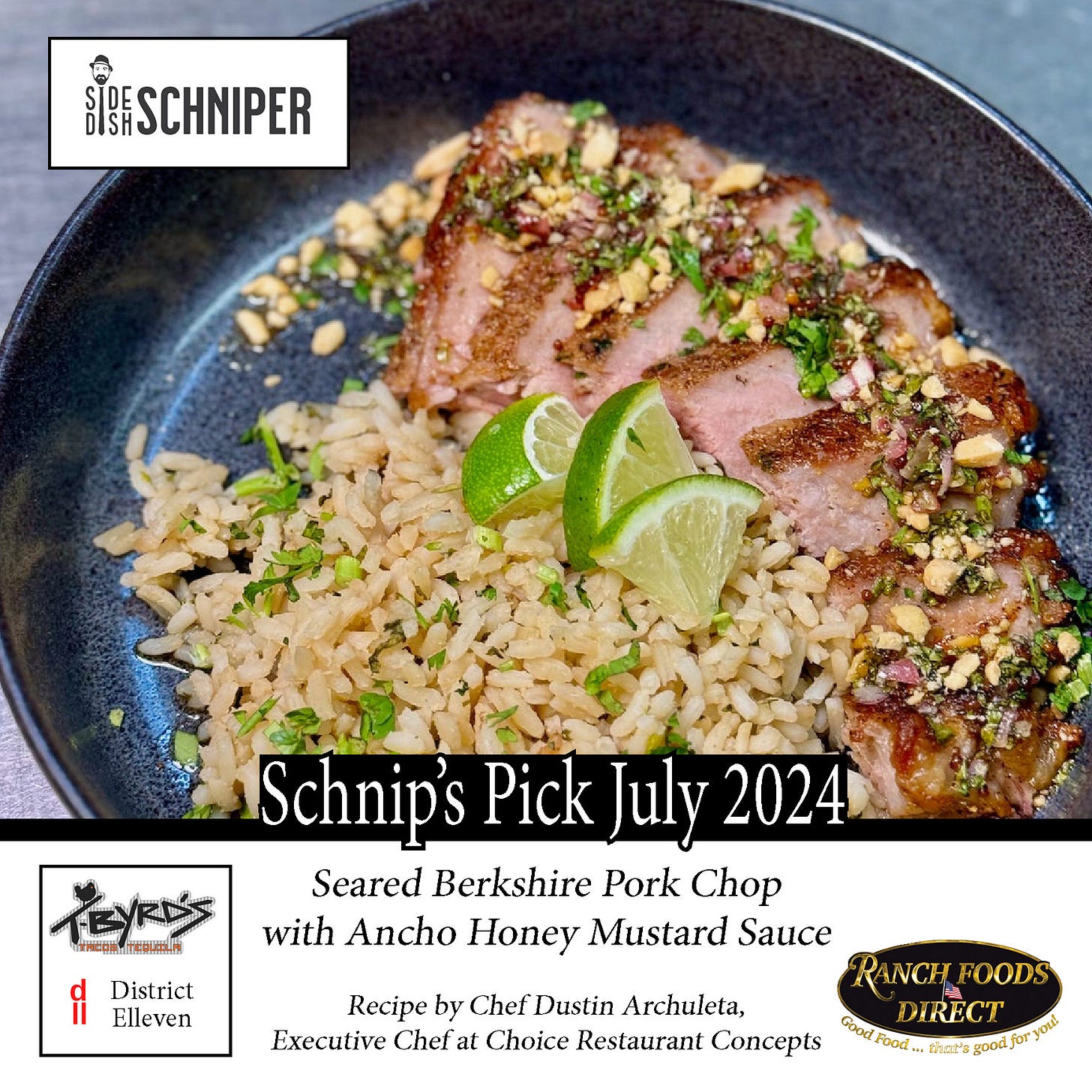 For July, Executive Chef Dustin Archuleta of Choice Restaurant Concepts (District Elleven, T-Byrd’s Tacos & Tequila, Bird Tree Cafe) joins Side Dish’s collaboration with Ranch Foods Direct. He offers this wonderful recipe for a seared Berkshire pork chop with ancho honey mustard sauce. Ranch Foods Direct’s Berkshire pork is a heritage breed regarded for its superior intramuscular marbling, which means a lot of flavor on the plate. Stop by either RFD retail market to grab supplies, and mention Side Dish for a 5 percent discount on your entire shopping basket.